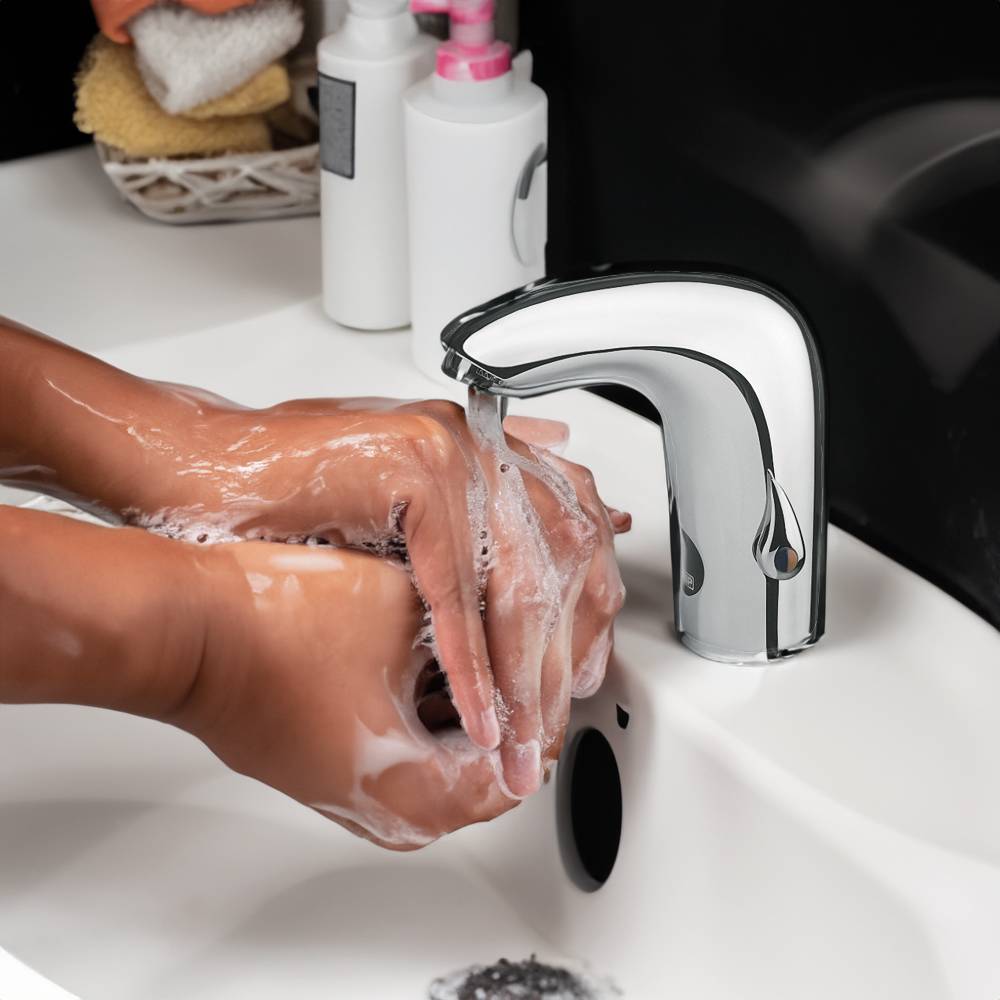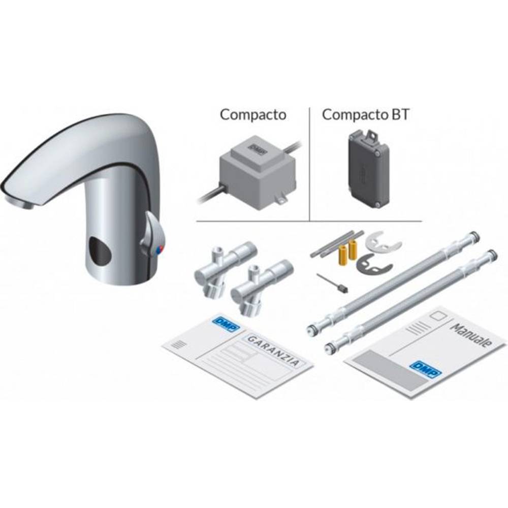Rubinetto elettronico con "DMP Infrared Sensor" antigraffio e anticalcare. Circuito elettronico da 4,5 V a tenuta stagna integrale. Raggio d'azione dei sensori regolabile da 5 a 30 cm. Microchip programmato per il perfetto controllo delle funzioni. Funzioni ottimizzate tramite software integrato DMP. Corpo in ottone cromato lucido. Con miscelatore incorporato, sottolavabo o per acqua premiscelata Stop automatico anti-allagamento dopo 90 secondi Portata acqua standard: 6 litri/minuto. Opzionale: 1,9 o 3 litri/minuto Rubinetti d'arresto con filtri inox e valvole di non ritorno incorporati PER MODELLO A BATTERIE: Pile alcaline tipo AA da 1,5V Autonomia pile: 4 anni a 200 azionamenti al giorno Avviso pile scariche tramite led sui sensori Box portapile a tenuta stagna integrale PER MODELLO A CORRENTE: Trasformatore di sicurezza 230Vac - 5Vdc