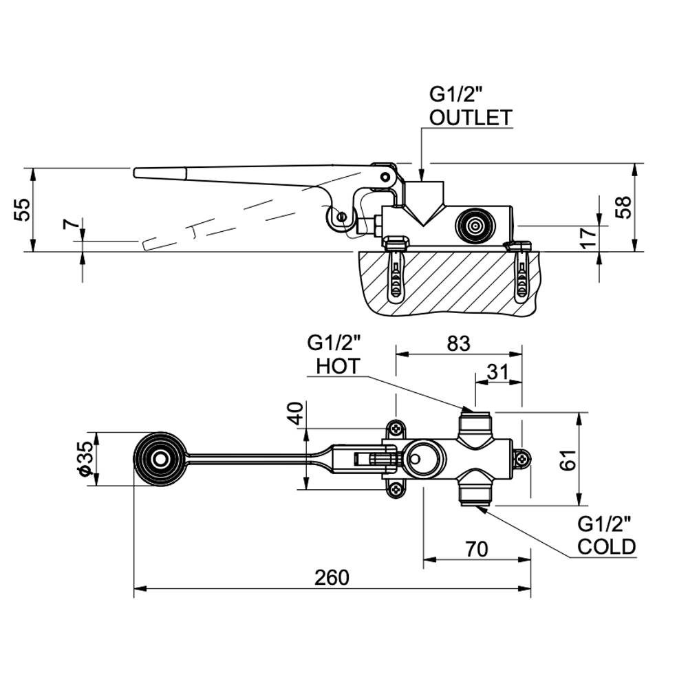 | 04451 | RUBINETTO MISCELATORE PROGRESSIVO A PEDALE INSTALLAZIONE UNIVERSALE 1/2" 9011