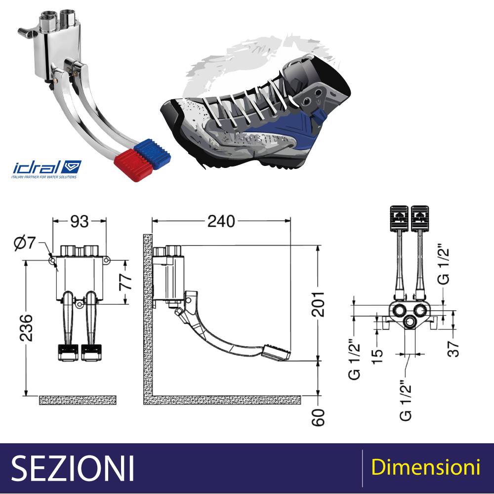 | 04460 | RUBINETTO A PEDALE 2 VIE INSTALLAZIONE A PARETE 1/2" 2068