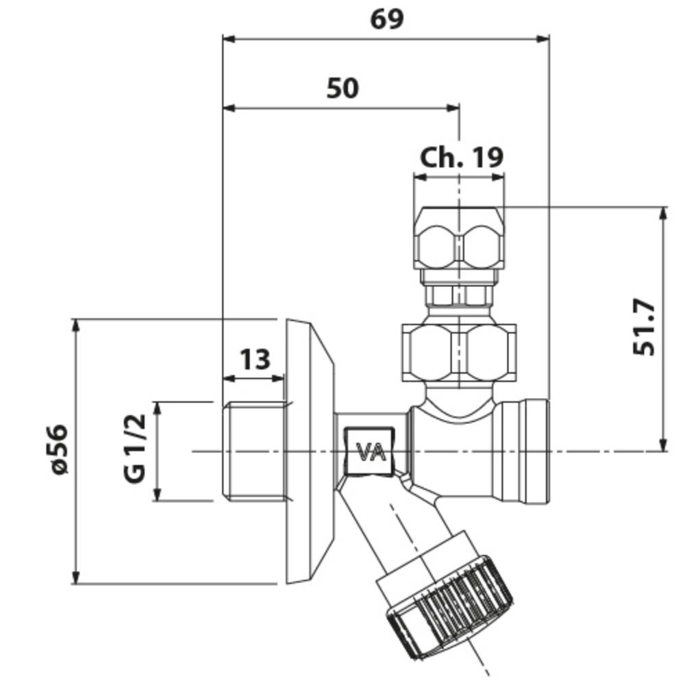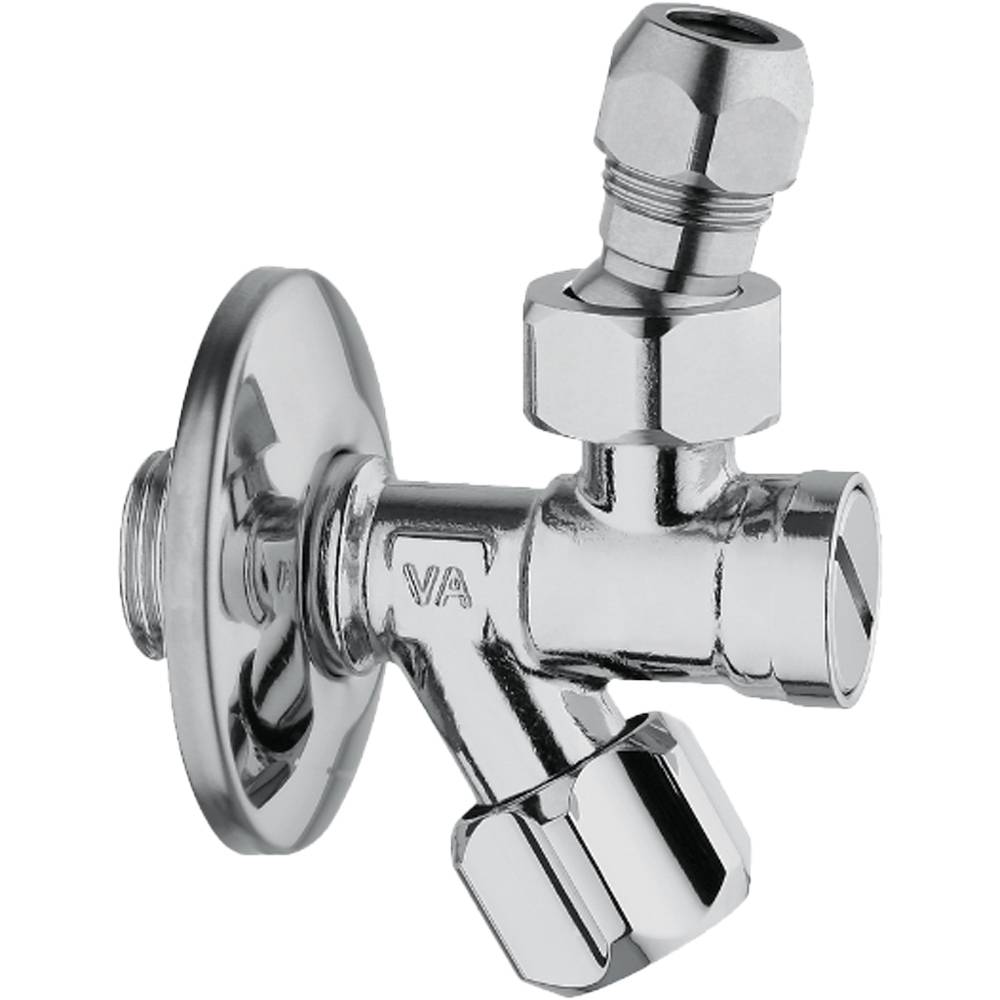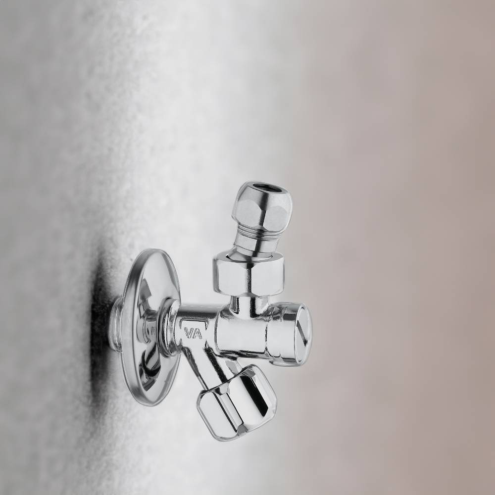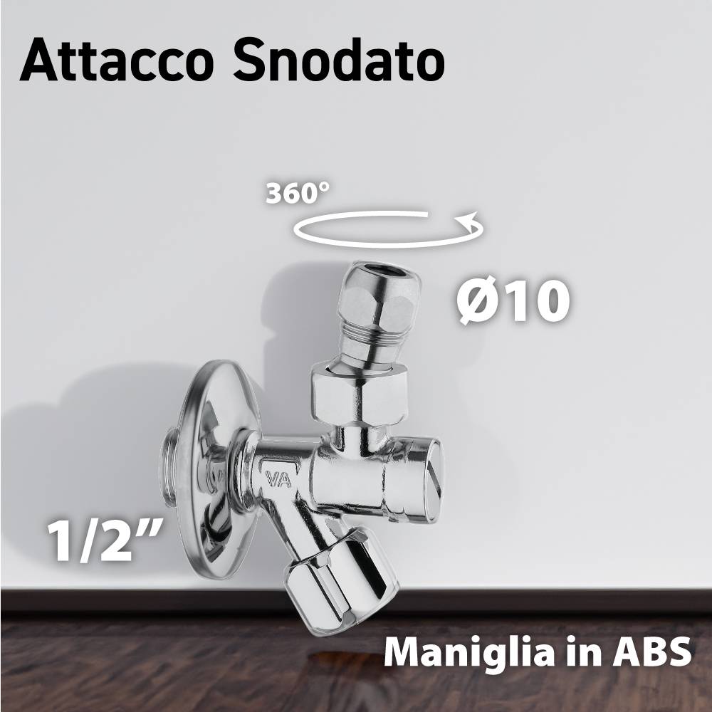 Chiusura a vitone. Vitone resina anticalcare, maniglia ABS, rosone inox, snodo e dado conico, cromato.