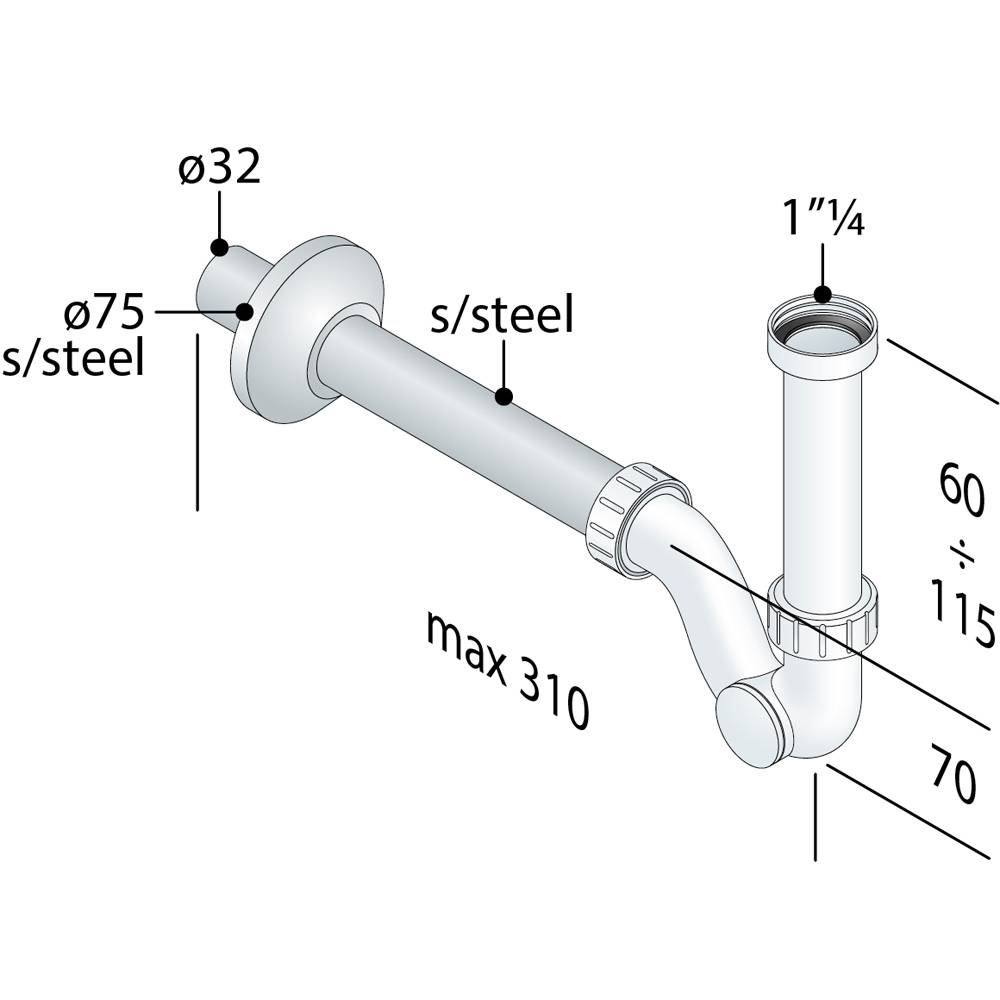 | 0471932 | SIFONE PER BIDET "HYBRID" AD S CON ISPEZIONE LATERALE 1"1/4 - Ø32 x 250 mm 6322.444.5.HY