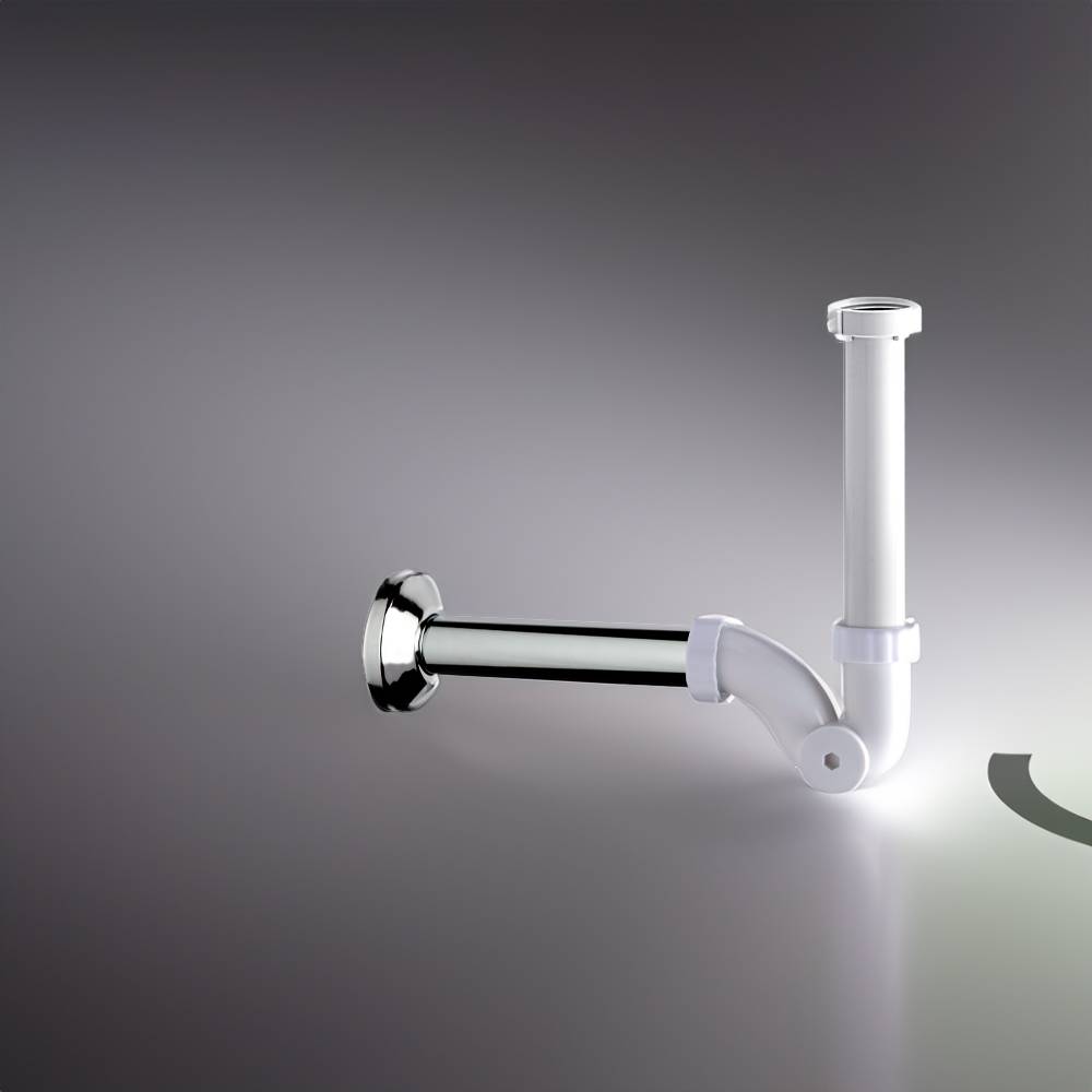 Sifone U in ABS bianco per lavabo. Entrata H. 120 mm × 1"1/4 - Uscita L. 250 mm × Ø 32. Rosone inox Ø75