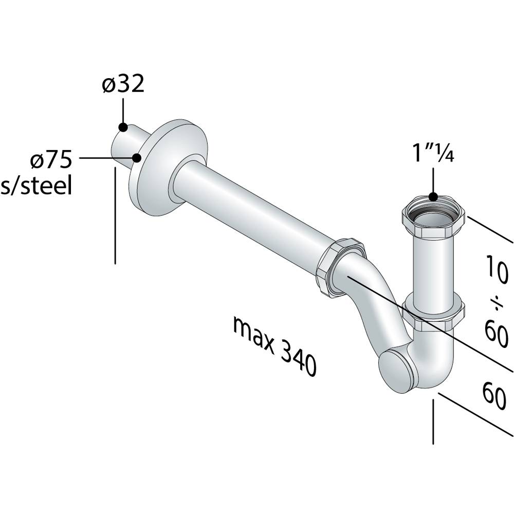 | 0472204 | SIFONE PER LAVABO E BIDET AD S CON ISPEZIONE LATERALE "EUROPA" TEA 1"1/4 - Ø32 x 250 mm 422.222.5SL