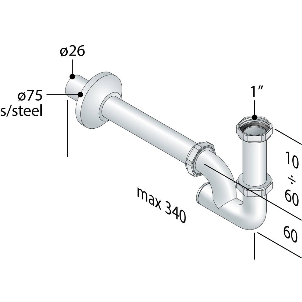 | 0472402 | SIFONE PER LAVABO E BIDET AD U CON ISPEZIONE POSTERIORE "EUROPA" TEA 1" - Ø26 x 250 mm 324.222.4