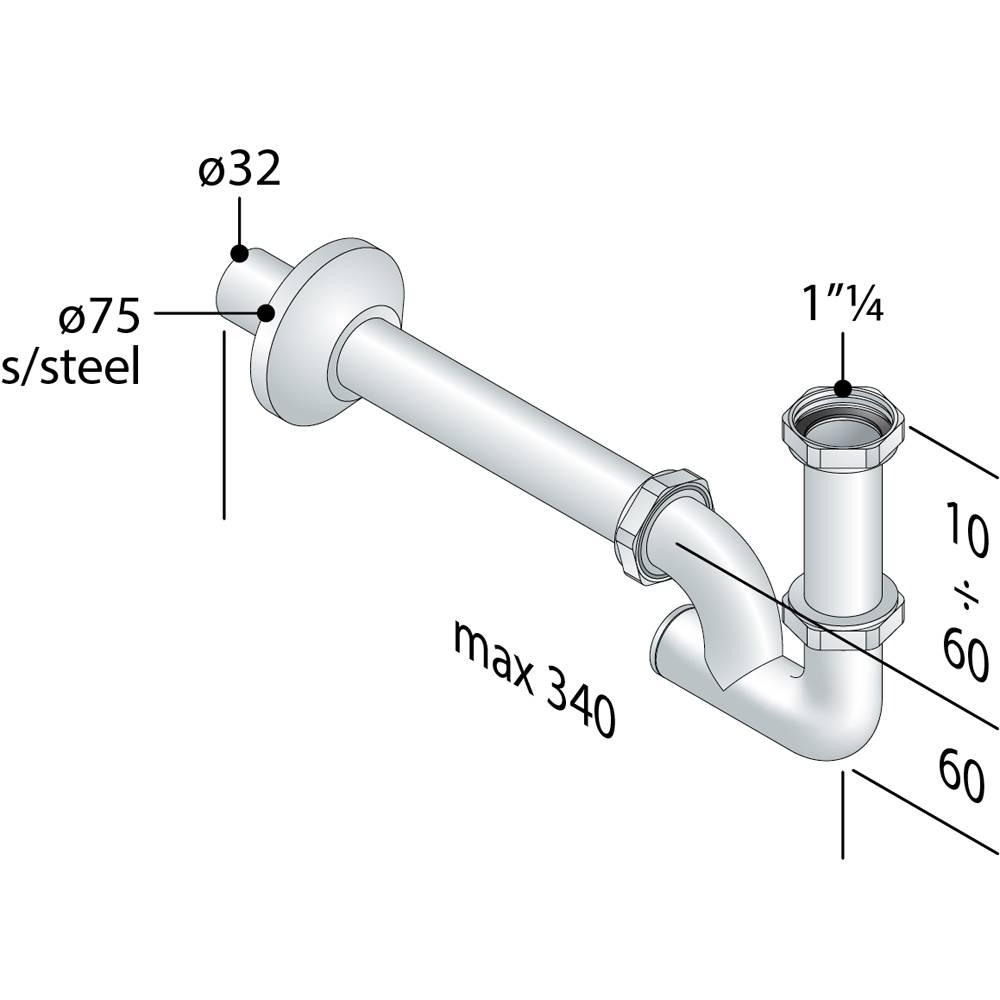 | 0472404 | SIFONE PER LAVABO E BIDET AD U CON ISPEZIONE POSTERIORE "EUROPA" TEA 1"1/4 - Ø32 x 250 mm 424.222.5SL