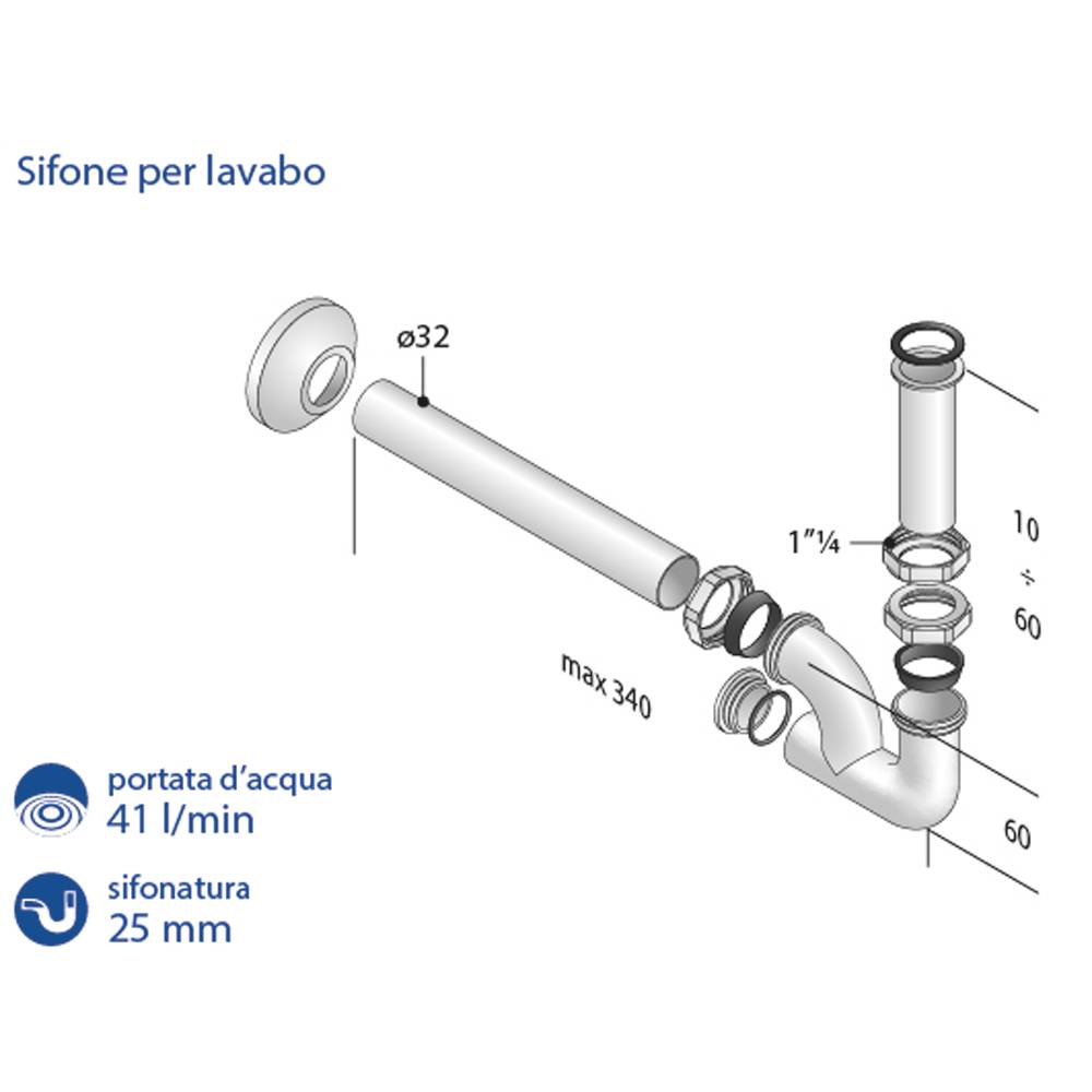 | 0473302 | SIFONE PER LAVABO AD U CON ISPEZIONE POSTERIORE "ZETA" 1"1/4 - Ø32 x 250 mm 140/Z