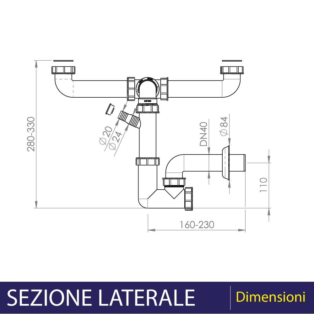 | 0477302 | SIFONE PER LAVELLO A 2 VIE SALVASPAZIO ISPEZIONABILE 1"1/2 x Ø40 mm D770