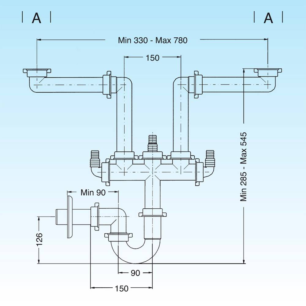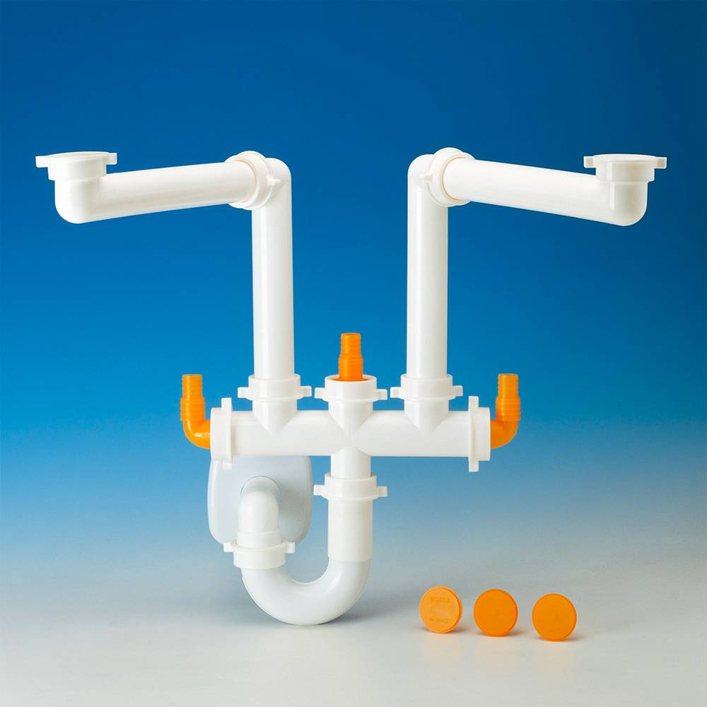Sifone salvaspazio per lavelli a due vasche.