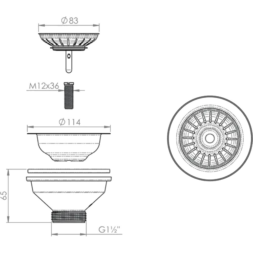 | 04846 | PILETTONE A CANESTRO PER LAVELLO CUCINA CON FORO Ø 90 STP 1"1/2 x Ø114 mm D550-36-R