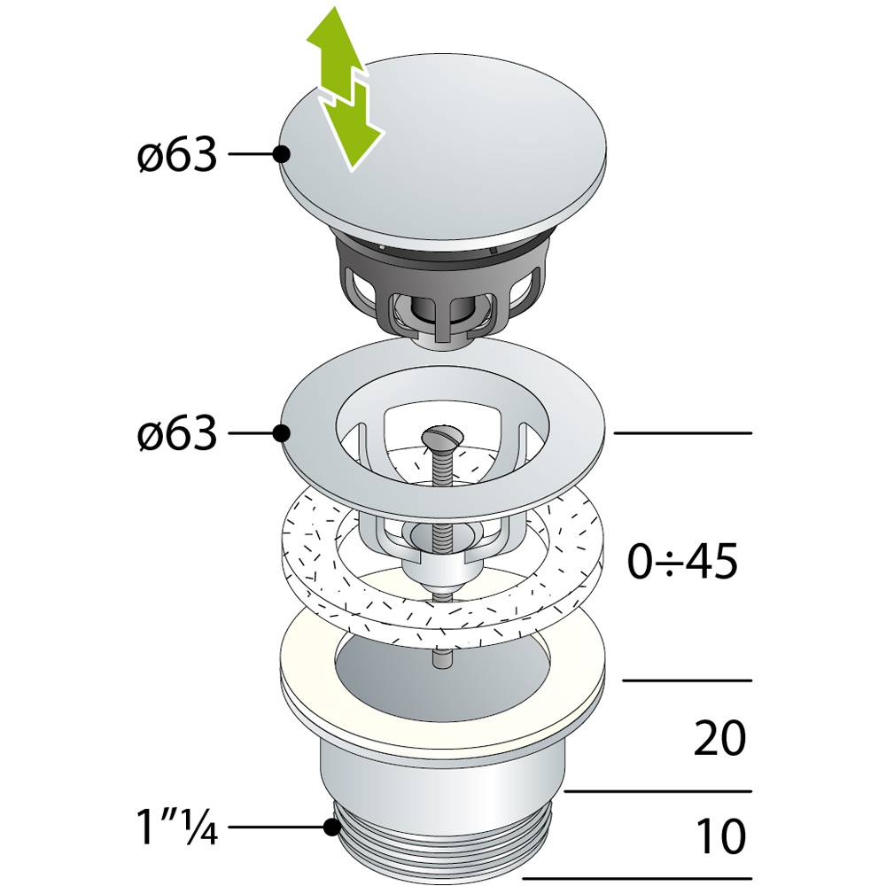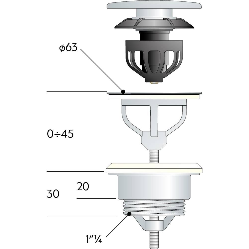 | 0487902 | PILETTA CLICK CLACK UNIVERSALE CON GRIGLIA FERMACAPELLI 1"1/4 x Ø63 mm 7532.310.5