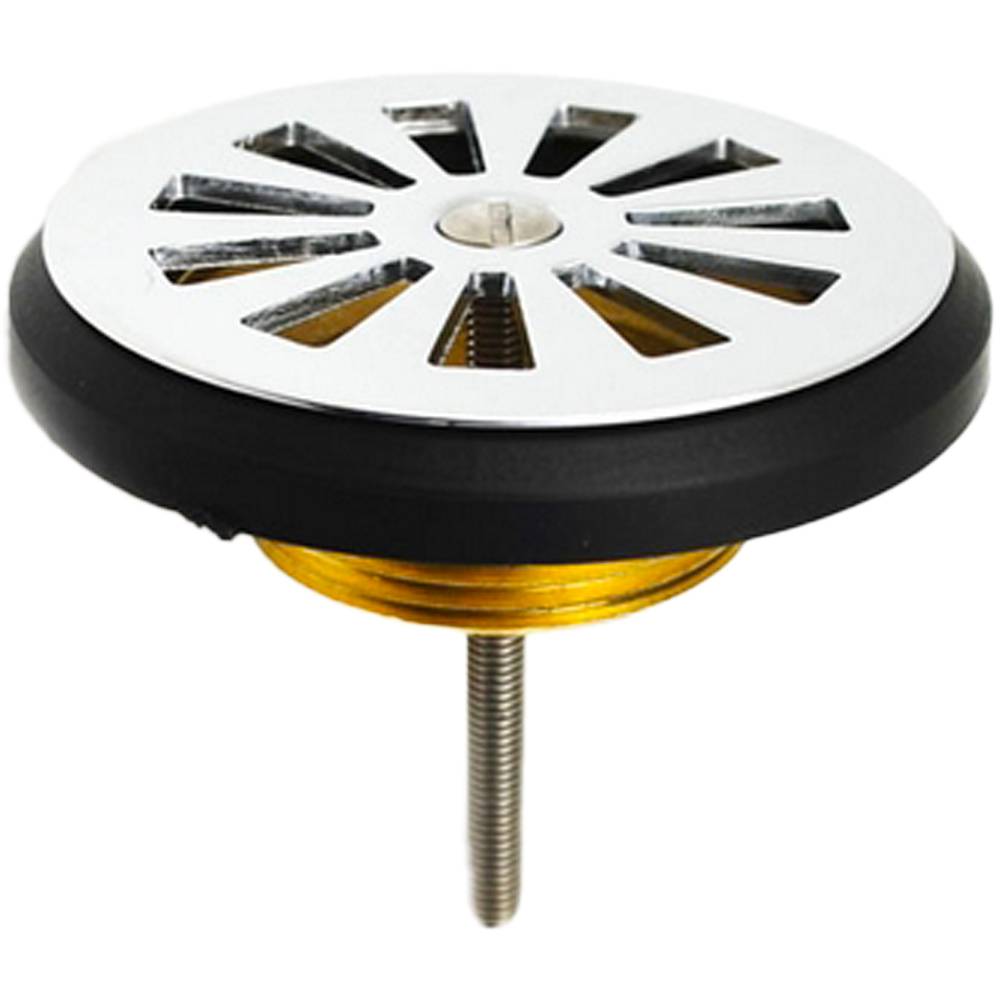 Griglia Ø80 mm in ottone cromato. Uscita verticale 1"1/4. Vite: Lunghezza 75 mm. Portata d'acqua 40 litri/minuto. Prodotto conforme alla norma europea EN274