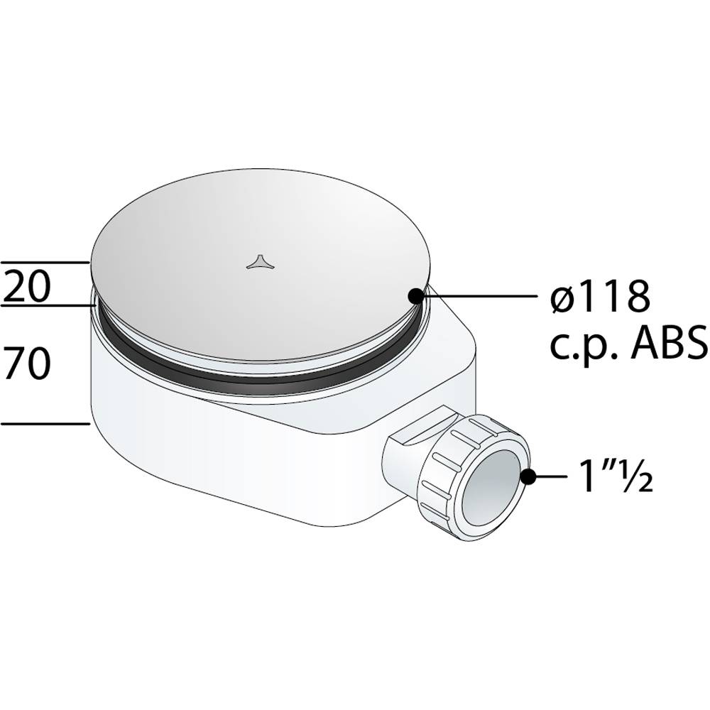 Ideale per piatto doccia in acrilico. Piletta Ø115 mm in POM bianco. Griglia Ø118 mm in ABS cromato. Uscita 1"1/2 laterale. Portata: 25 l/min. Colonna d'acqua: 35 mm. Ingombro sotto piatto doccia 70mm. Copripiletta di ricambio nostro codice 04921.