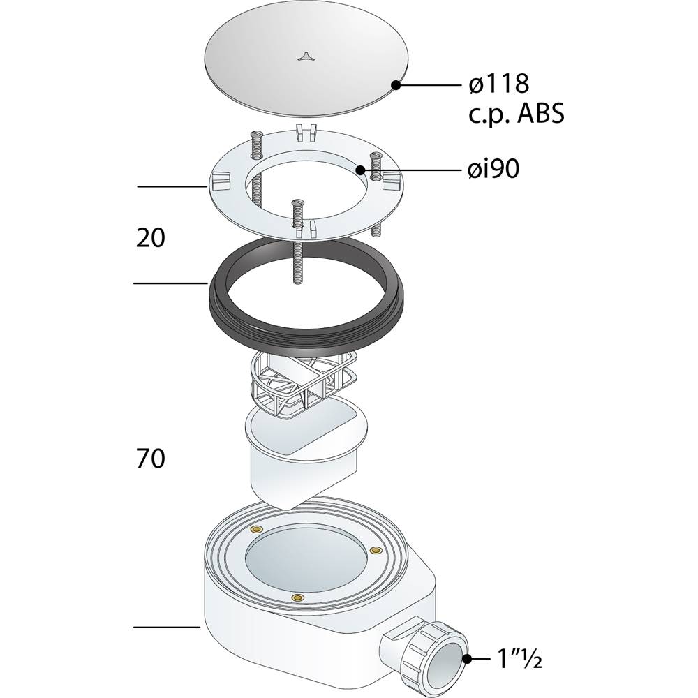 | 04923 | PILETTA SIFONATA PER PIATTO DOCCIA CON FORO Ø90 "ALOHA" 1"1/2 x Ø118 mm 6261.076.6