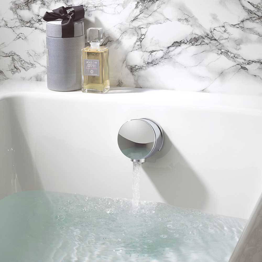 Maniglia a 6 gole, Tappo in ottone Ø42 mm. Tubo di troppo pieno corrugato e flessibile per una facile installazione. Movimento di trasmissione a cremagliera realizzato in POM garantice affidabilità e precisione. 0498802 è dotato di bocca di erogazione in Ottone con Aereatore.