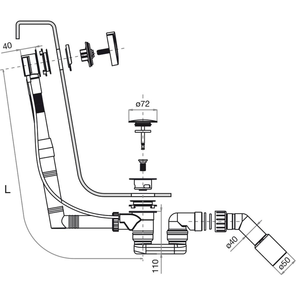| 04994 | COLONNA SCARICO VASCA + SIFONE RIBASSATO PREASSEMBLATO Normale 45-55 cm TK106.01