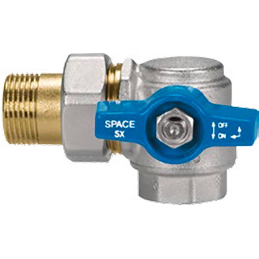 Valvola a Sfera passaggio totale. La valvola SPACE è indicata in impianti di riscaldamento per le batterie di collettori. Estremità filettate: - femmina a norme ISO 228/1. - codolo e girello (tenuta metallica + O-ring). Organi di manovra: farfalla in alluminio blu. Il senso del flusso è inoltre rilevabile dalla marcatura sullo stelo di manovra. Tutte le valvole rispettano la direttiva 97/23/CE e vengono testate al 100% con prova di tenuta pneumatica a controllo elettronico. LIMITI TEMPERATURA da -15°C a +90°C. LIMITI PRESSIONE da 40 a 10 bar