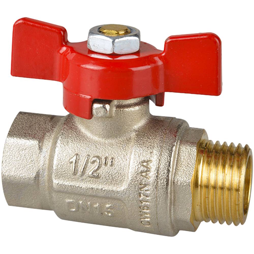Valvola a sfera a passaggio totale. Farfalla in alluminio verniciato rosso. Filettatura M/F. Asta comando antiscoppio doppio O-ring. Idonea per acqua in impianti di riscaldamento/raffrescamento. Filettatura ISO 228.