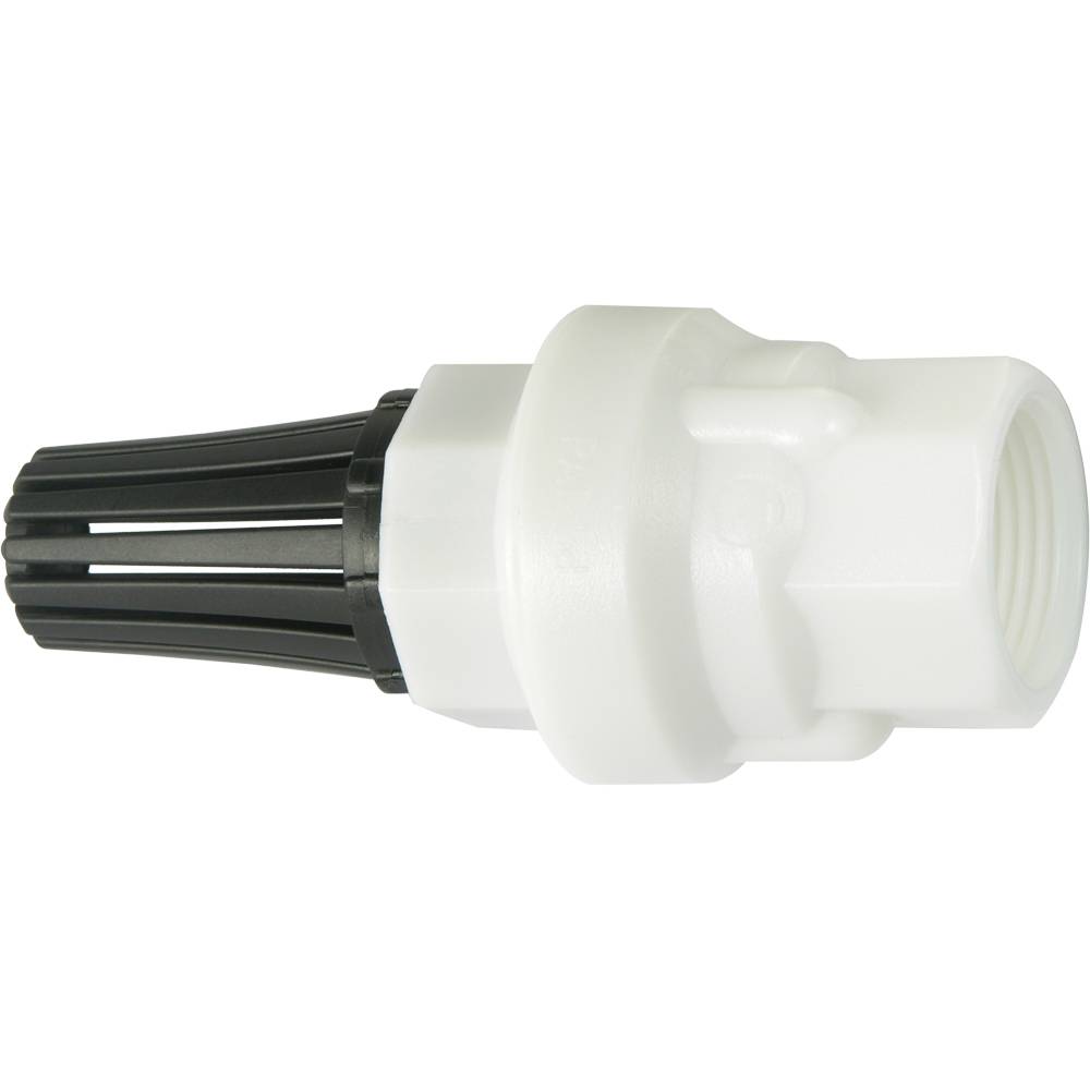 Con guarnizione piana in NBR. Attacco filettato Femmina GAS cilindrico UNI ISO 228/1. Pressione di esercizio: 10 bar a 20°C. Temperatura massima di esercizio: 85°C. Materiali: Resina acetalica (POM), Poliammide (nylon 66) PA e NBR.