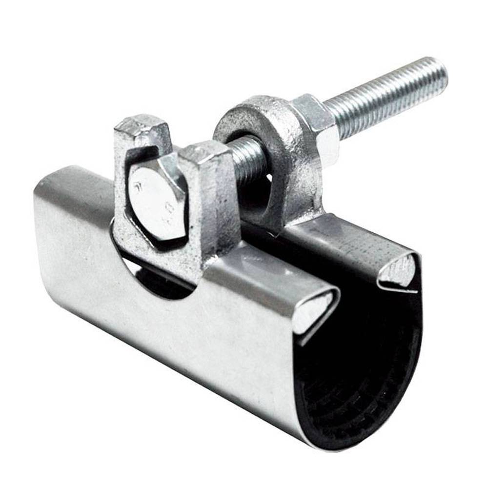 Collare semplice ad un tirante per la riparazione temporanea di tutti i tipi di tubazioni ad impiego acqua o gas. Compatibile con acqua potabile, si utilizza per le riparazioni di piccole rotture. Riparazione di condotte rigide come acciaio, ghisa, fibrocemento e PVC. Certificato all'utilizzo su impianti per acqua potabile secondo il D.M. 174 del 2004. Collaudato con prove a pressione in laboratorio. Applicazione su tutte le superfici, anche rugose. Non esporre ad irradiazione solare (per conservazione della guarnizione), Temperatura di utilizzo -10°C / 60°C. PN 16. MOP 6 Bar.