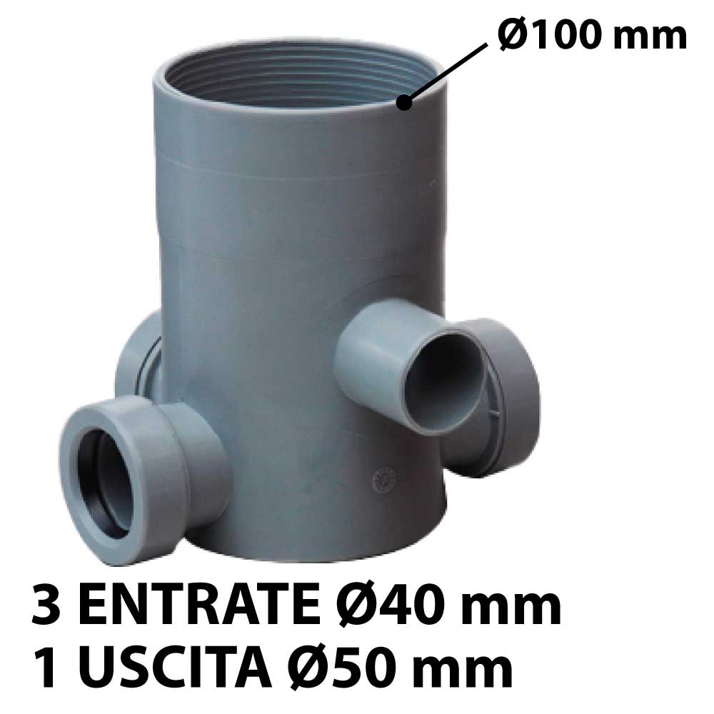| 0655204 | POZZETTO WC ALTO H.170 A INNESTO Ø100 IN PP GRIGIO 3 Entrate Ø40 - 1 Uscita Ø50