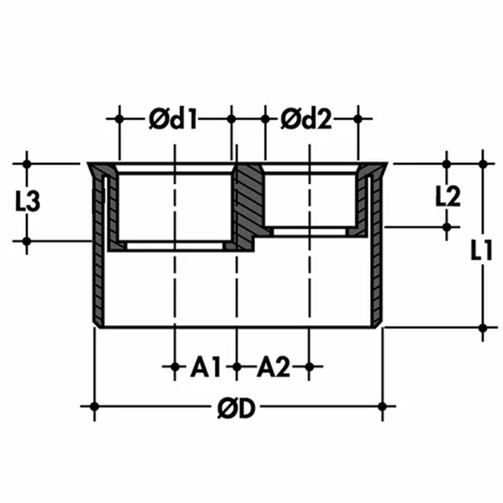 | 06696 | TAMPONE DI RIDUZIONE DOPPIO MASCHIO/FEMMINA AD INCOLLAGGIO Ø100 x Ø40/40