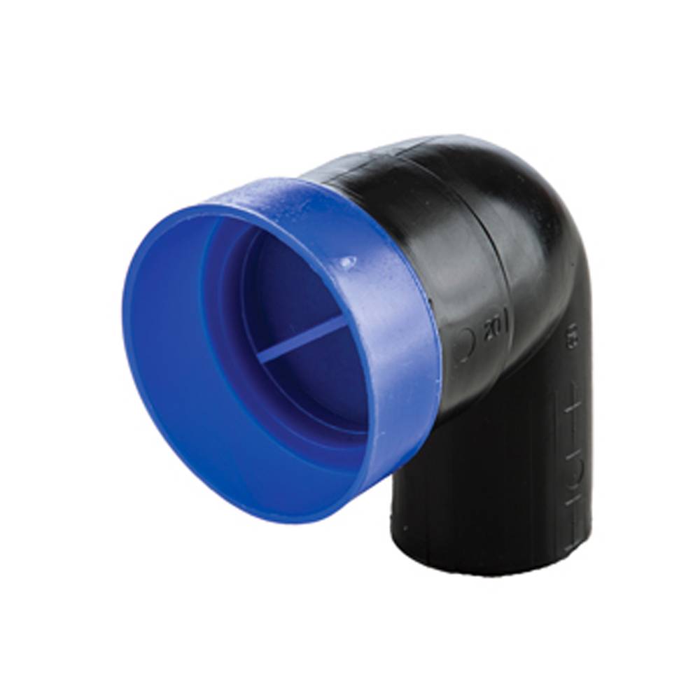 Classe: B3. Fornitura di tappo protezione Morsetto da ordinare separatamente. Il diametro interno è inteso compreso di morsetto. Pressione max di esercizio a 20°C: 3.2 Bar Materiale PE HD. Colore Ral Nero. Lunghezza 85 mm. Certificazione Kiwa