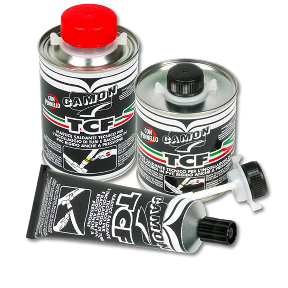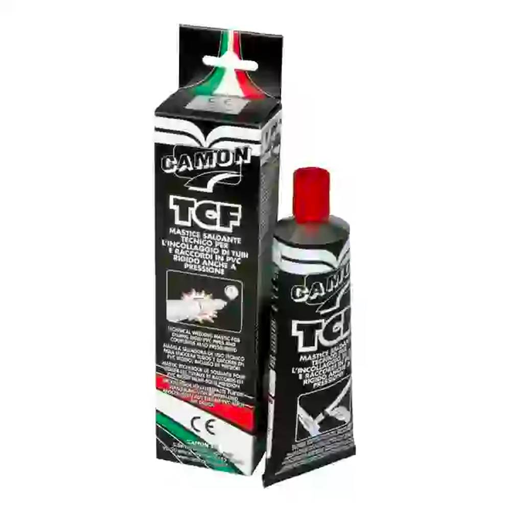 Adesivo saldante tecnico trasparente, a base di PVC disciolto in solventi. Gli incollaggi effettuati con TCF, che sono delle vere e proprie saldature a freddo, possiedono la stessa resistenza agli agenti chimici e hanno le stesse proprietà meccaniche e chimiche del PVC rigido. Il suo utilizzo è indicato per giunzioni longitudinali di tubi in PVC rigido, assemblaggi di tubi e raccordi in PVC rigido anche sotto pressione, incollaggi di grondaie e condotti passacavi in PVC rigido. È utilizzabile anche per incollare ABS, PVA e polistirolo rigido oltre a diverse materie plastiche anche se con minore resistenza.