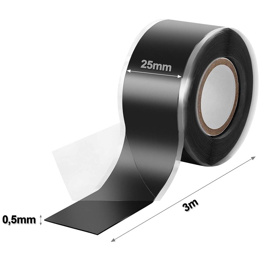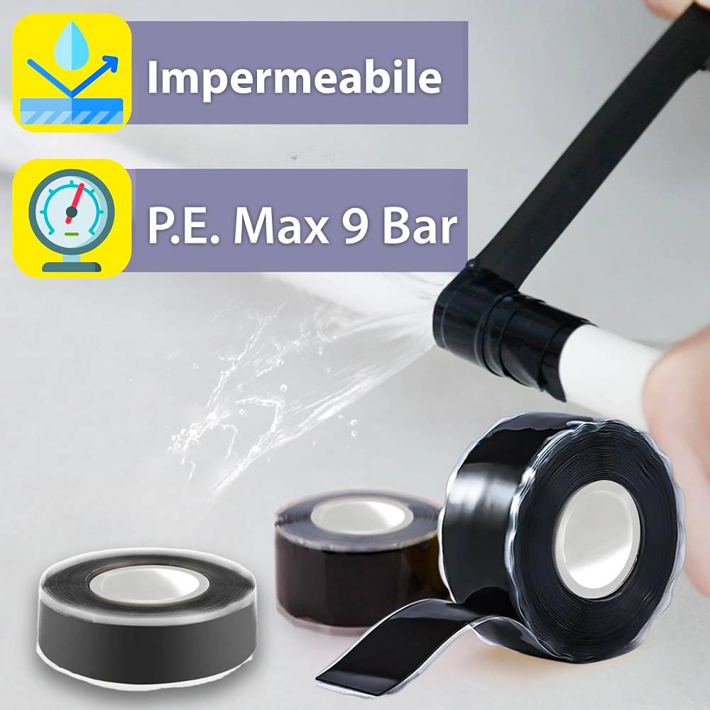 Rotolo da 3 m. Caratteristiche tecniche: P.E. max: 9 bar T.E.: -70° ÷ + 270°C H: 25 mm Spessore: 0,5 mm A base di silicone per riparazioni negli impianti di riscaldamento, sanitari e tubi per l'aria. Può sigillare qualsiasi materiale adatto per sigillare anche in pressione. È resistente agli acidi, solventi,carburanti, acqua marina ed anche ai raggi UV.