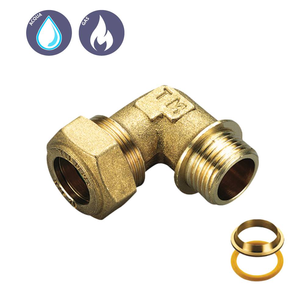 | 0692710 | RACCORDO CURVO MASCHIO A COMPRESSIONE CON O-RING GIALLO PER GAS TIEMME Ø16 x 1/2" 1350048