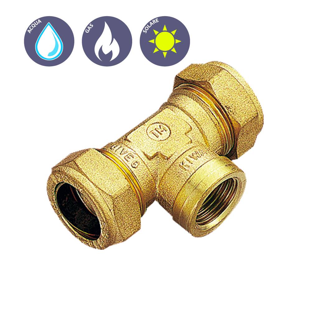 | 0694702 | TEE FEMMINA A COMPRESSIONE CON OGIVA IN OTTONE PER TUBO RAME TIEMME Ø22 x 3/4" x Ø22 1000066