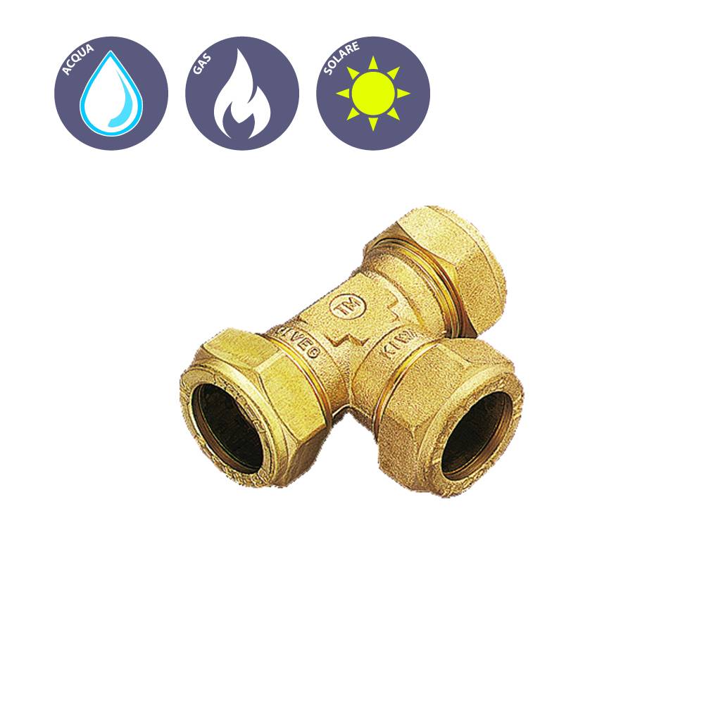 | 0694802 | TEE CON 3 DADI A COMPRESSIONE CON OGIVA IN OTTONE PER TUBO RAME TIEMME Ø22 x Ø22 x Ø22 1000013