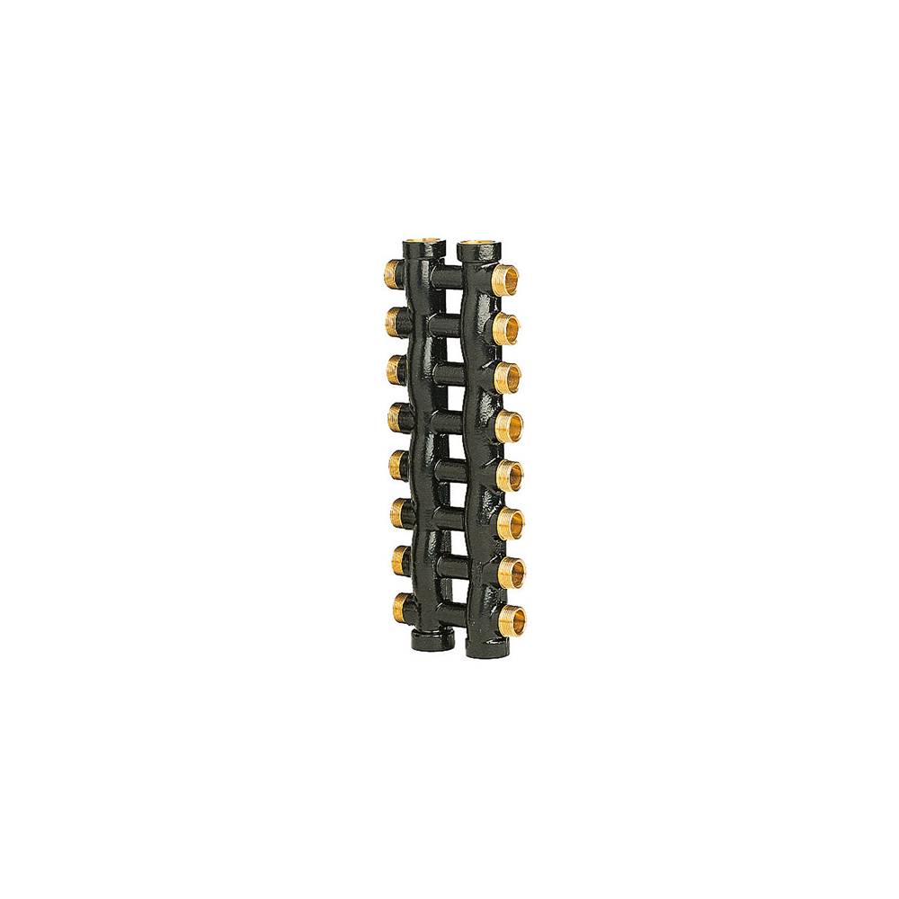 I collettori complanari sono generalmente utilizzati per la distribuzione del fluido termovettore negli impianti di climatizzazione. Forniti di attacchi bilaterali permettono il collegamento a raccordi per tubazioni in rame, materiale plastico e multistrato. Corpo in Ottone UNI EN 1982 CB 753S. Pressione max di esercizio: 10 bar. Campo di temperatura: -10°C / +100°C.