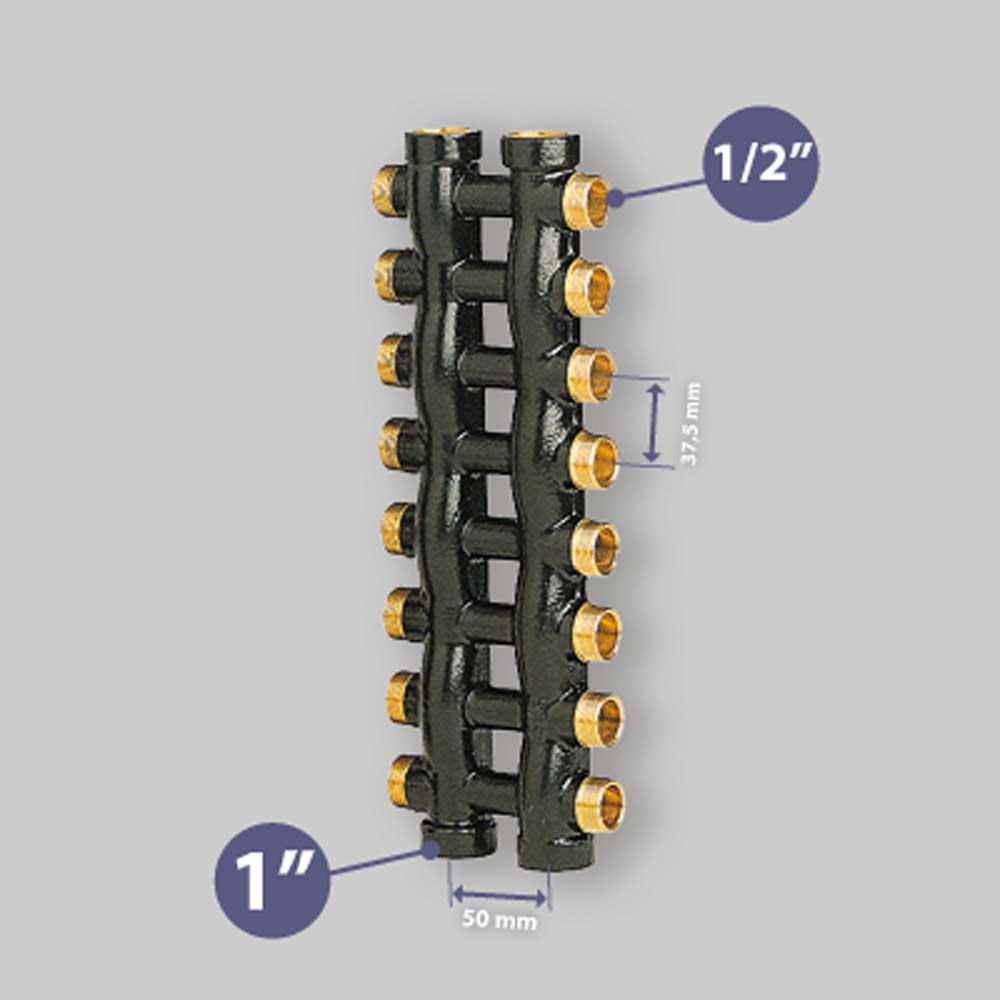 | 0751804 | COLLETTORE COMPLANARE MASCHIO/FEMMINA 1" PER TUBO RAME/PEX/MULTISTRATO ICMA 8x8 vie da 1/2"(16) 87232PL09