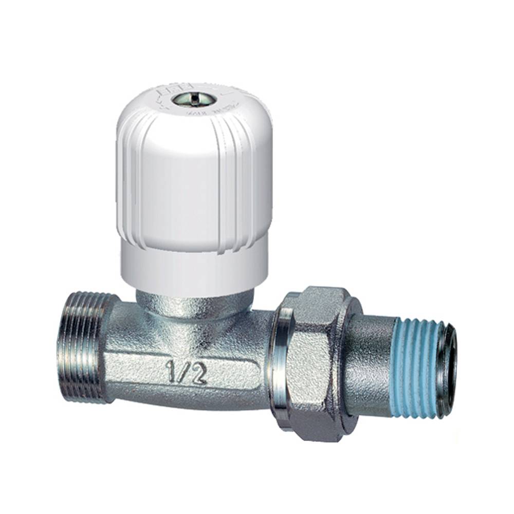 Valvola manuale diritta cromata. - Attacco intercambiabile per tubo rame, plastica e multistrato. - Volantino rinforzato in metallo. - Asta con doppia tenuta, o-ring e premistoppa. - Otturatore a battuta metallica e tenuta con o-ring. - Codolo preguarnito con Loctite® Dri-Seal® 5061. - Tenuta tra codolo e corpo valvola in HPF. Temperatura max di esercizio 95°C. Pressione max d'esercizio 10 bar.