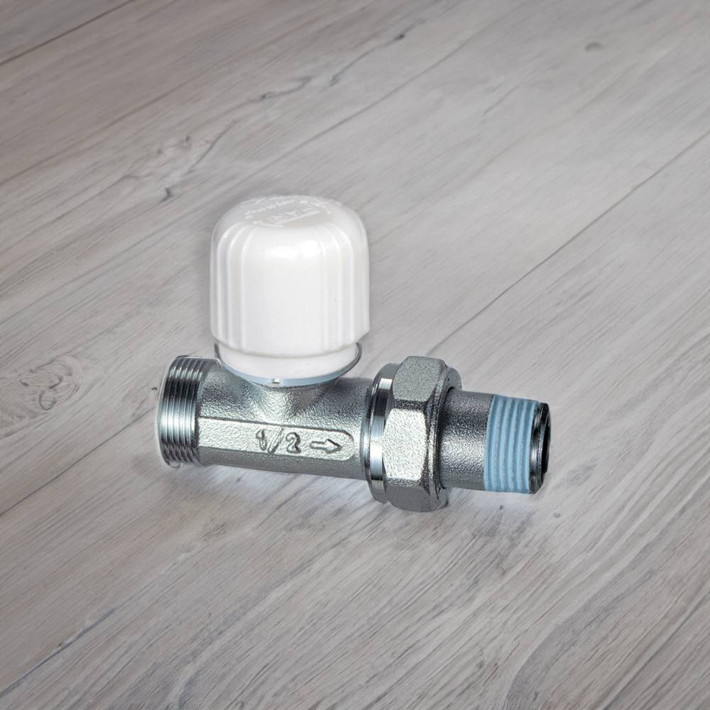 Valvola termostatizzabile diritta cromata. - attacco intercambiabile per tubo rame, plastica e multistrato. - semplice sistema di estrazione volantino. - perno inox con doppio o-ring di tenuta. - molla di richiamo rinforzata e otturatore piatto. - codolo preguarnito con Loctite® Dri-Seal® 5061. Temperatura max di esercizio 95°C. Pressione max d'esercizio 10 bar.