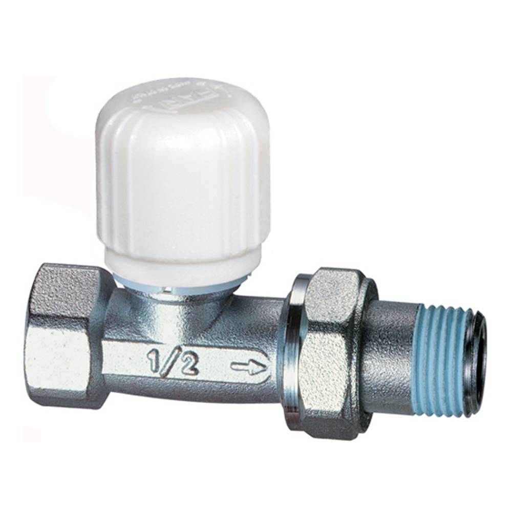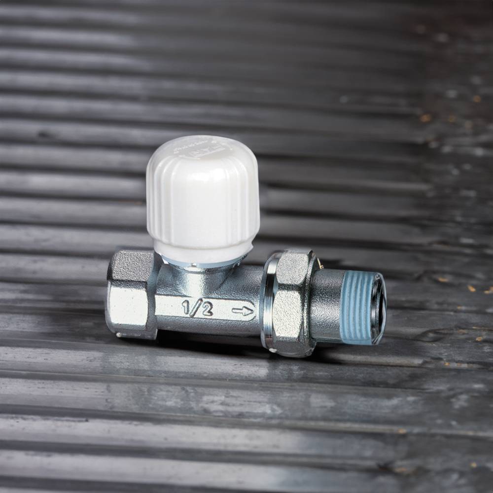 Valvola termostatizzabile diritta cromata. - Attacco per tubo ferro. - Semplice sistema di estrazione volantino. - Perno inox con doppio o-ring di tenuta. - Molla di richiamo rinforzata e otturatore piatto. - Codolo preguarnito con Loctite® Dri-Seal® 5061. Temperatura max di esercizio 95°C . Pressione max d'esercizio 10 bar.