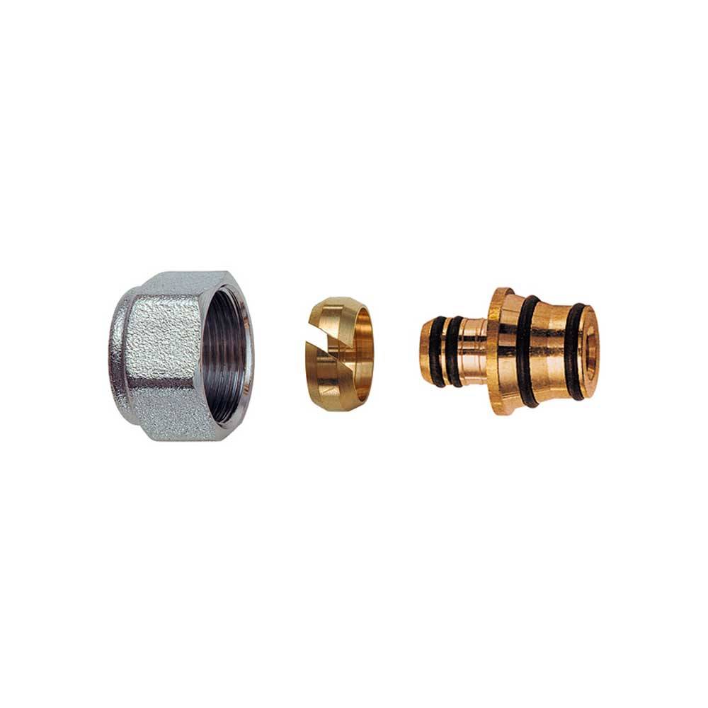 Completo di : - Adattatore per tubo multistrato. - Anello stringitubo in ottone. - Calotta cromata filetto 24x19. Kit per tubi multistrato adattabile a tutti gli articoli con attacco intercambiabile. Composto da: adattatore in ottone per tubo multistrato con 2 o-ring di tenuta nella parte anteriore e posteriore e un dischetto anticonduttività, anello stringi tubo in ottone e calotta in ottone cromata con filetto 24x19.