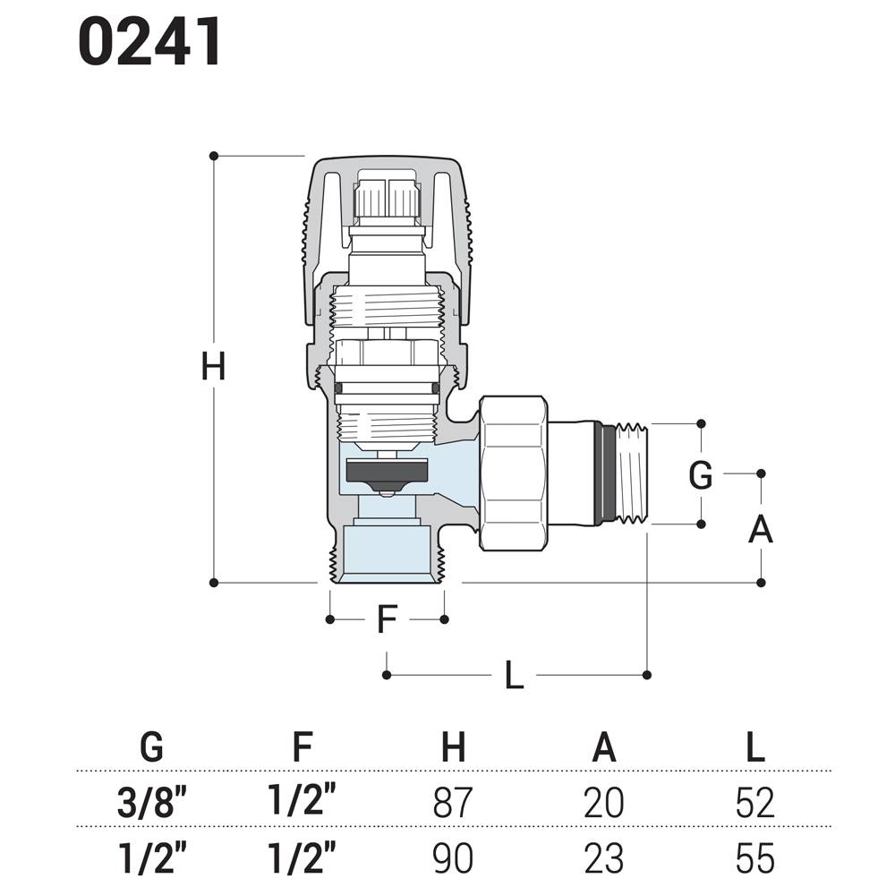 | 0790802 | VALVOLA A SQUADRA TERMOSTATIZZABILE ATTACCO PER TUBO RAME E MULTISTRATO "SERIE ITALIA" 3/8" x 1/2" 0241-1000N000