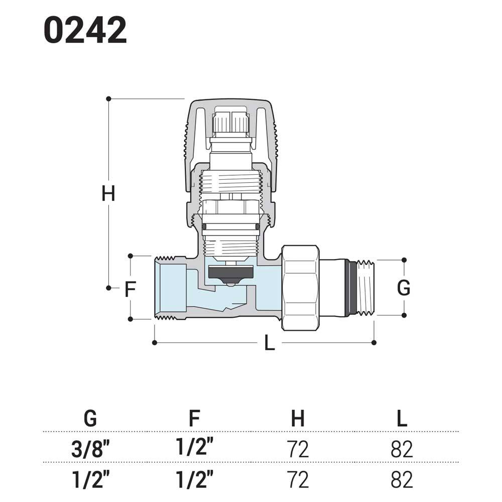 | 0791002 | VALVOLA DIRITTA TERMOSTATIZZABILE ATTACCO PER TUBO RAME E MULTISTRATO "SERIE ITALIA" 3/8" x 1/2" 0242-1000N000