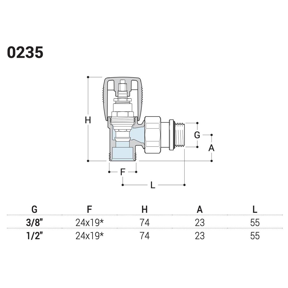 | 0792002 | VALVOLA A SQUADRA ATTACCO PER TUBO RAME E MULTISTRATO "SERIE PLANET" Bianca 1/2" - 24x19 0235-1500VCPA