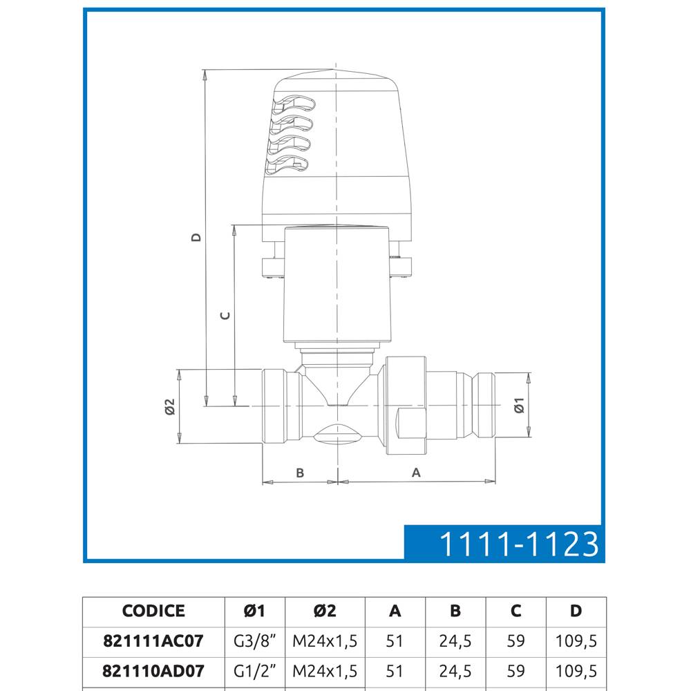 | 0801202 | VALVOLA TERMOSTATIZZABILE DIRITTA ATTACCO RAME, MULTISTRATO E PE-X "AIDA" CROMO 3/8" - 24x1,5 821111AC07