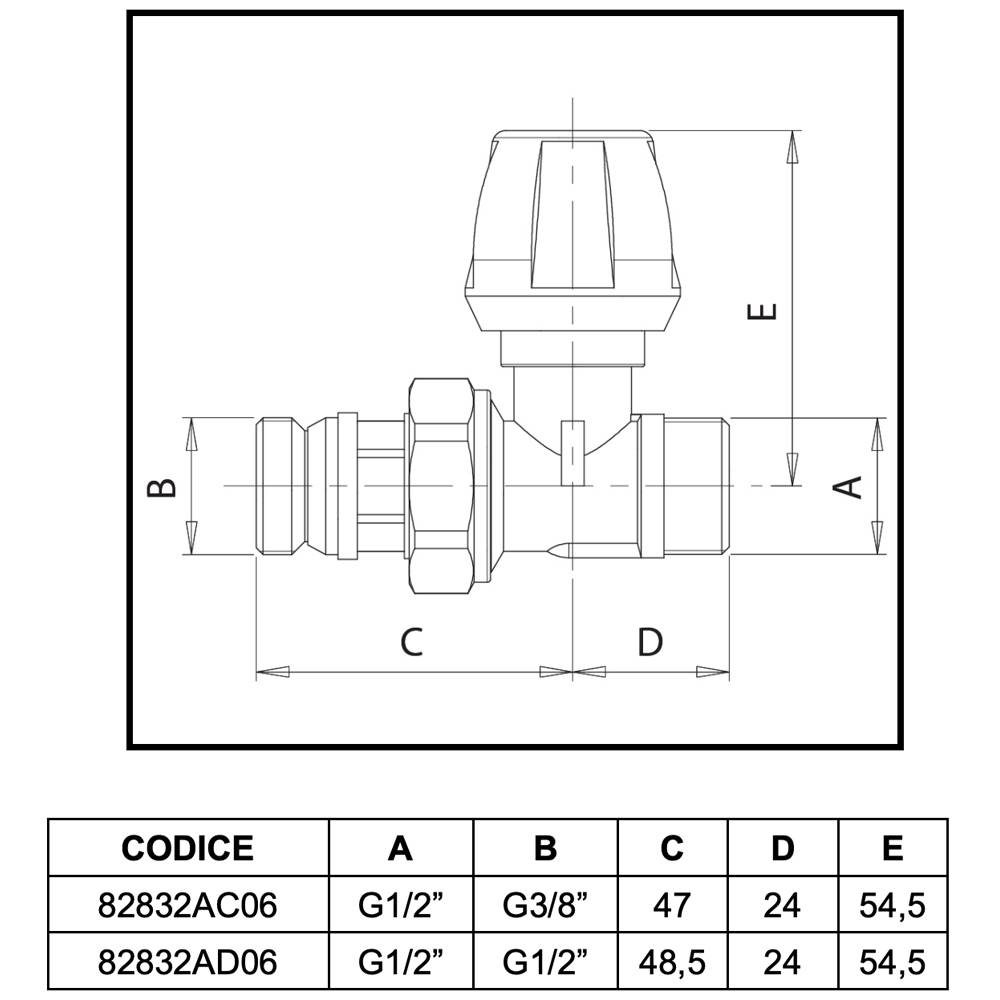 | 0804404 | VALVOLA DIRITTA ATTACCO PER TUBO RAME, MULTISTRATO E PE-X "DALIA" ICMA 1/2" x 1/2" 82832AD06