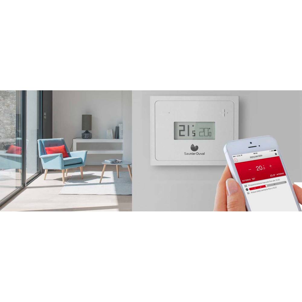 Alimentazione 2 batterie 1.5V (AAA). Durata della batteria 2 anni. Tipo di protezione IP20. Grado di sporco II. Temperatura ambiente 0-35°C. Range di temperatura regolabile 7-30°C. Frequenza di trasmissione 868 MHz. Portata massima all'aperto 250 mt. Dimensioni: H 72 mm x L 70 mm x P 28 mm. Gestisci le impostazioni da uno o più smartphone, all'istante e dovunque tu sia.