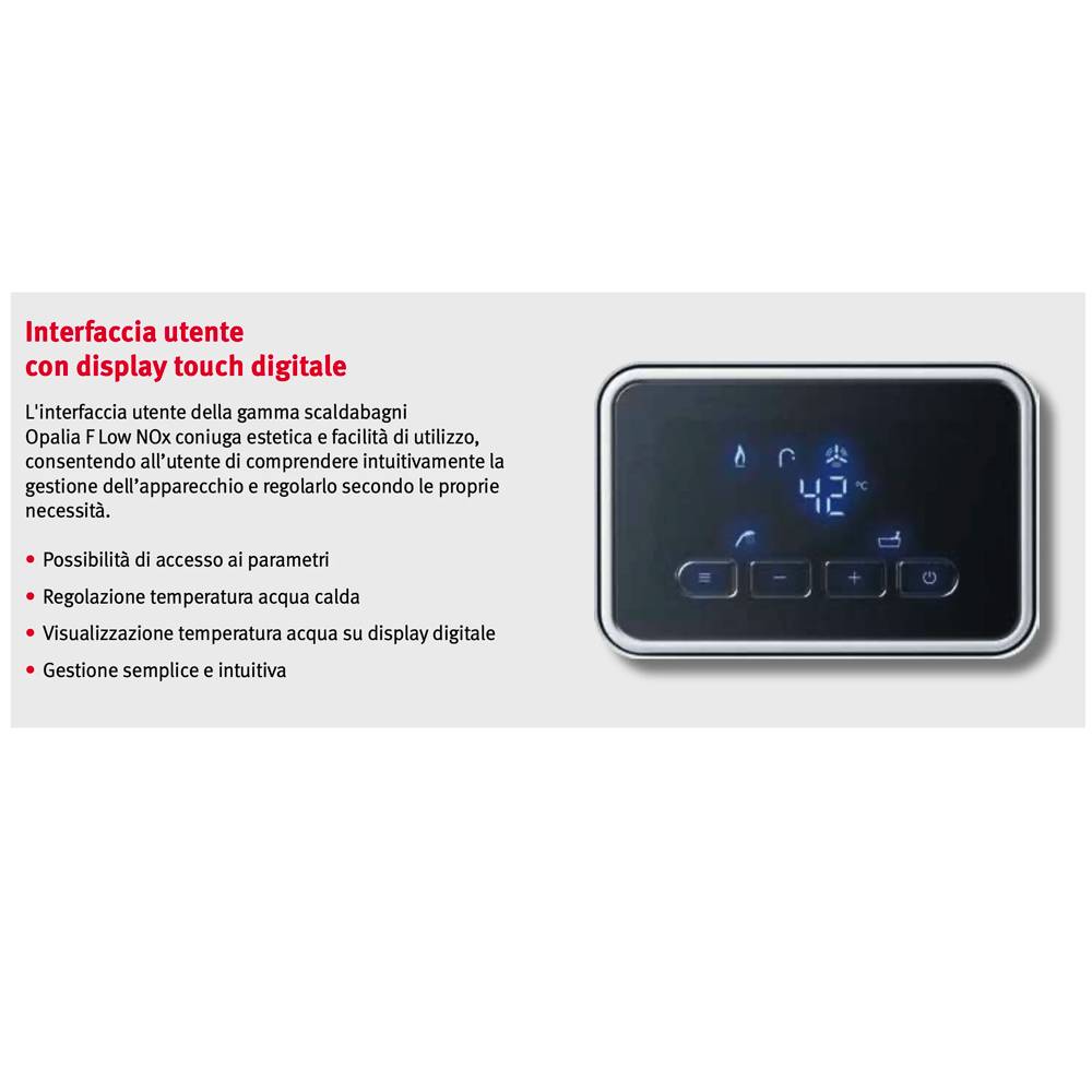 Gli scaldabagni a gas della gamma Opalia F sono facili da utilizzare e affidabili. Il modello Opalia F è disponibile nelle versioni a camera stagna da 12, 15 o da 17 litri, tutte dotate di accensione elettronica. Un nuovo bruciatore permette di ridurre le emissione NOx al minimo e raggiungere la Classe 6, come richiesto dalla direttiva ErP. Design moderno e dimensioni estremamente compatte (35cm): gli scaldabagni possono essere facilmente installati in ogni ambiente, anche all'esterno avendo l'omologazione IPX5D e la possibilità di essere protetto fino a -25°C con un apposito accessorio. Massima sicurezza: il termostato di sicurezza interviene in caso di sovratemperatura dell'acqua calda sanitaria; il controllo di fiamma a ionizzazione blocca l'erogazione del gas in caso di mancanza della fiamma al bruciatore. Controllo elettronico: è possibile adattare in modo ottimale il funzionamento dell'apparecchio alle condizioni di utilizzo e alla temperatura dell'acqua calda, garantendo il massimo comfort sanitario e ottimizzando il consumo di gas.