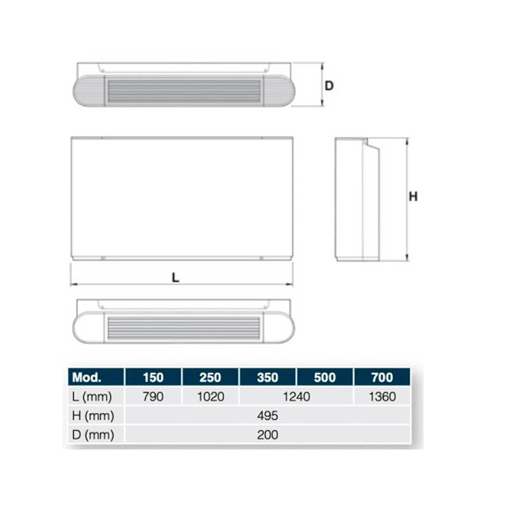 Nuova serie di ventilconvettori con ventilatore di tipo centrifugo con motore AC a 3 velocità. Caratterizzati da una profondità massima di 200 mm e nella versione con mantello da una linea estetica particolarmente accattivante, si prestano alle applicazioni di riscaldamento e condizionamento residenziale. Disponibile in 5 grandezze con potenze frigorifere da 1,65 a 6,00 kW e portate d'aria da 255 a 1300 m3/h. Nella versione standard vengono proposte con un'unica batteria 3 ranghi alla quale è abbinabile come accessorio nel caso di impianti 4 tubi una batteria 1 rango supplementare. Disponibile nella versione VM con mantello. Le unità sono installabili sia in posizione verticale che orizzontale.
