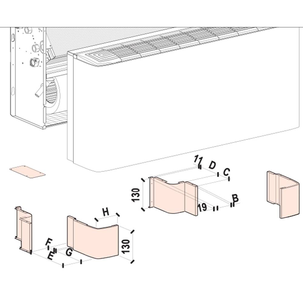 Coppia di piedini in lamiera preverniciata utili a sostenere il ventilconvettore quando viene installato appoggiandolo al paviemento. Per tutti i modelli VCE X0.
