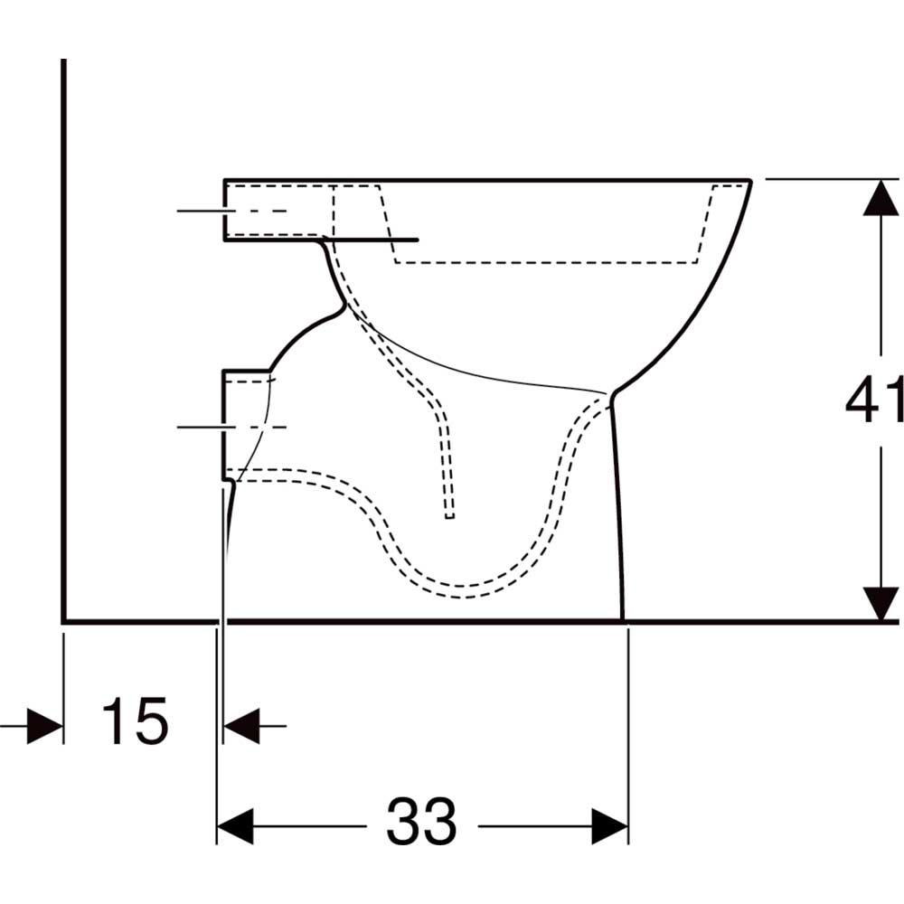 Vaso a cacciata con Brida di risciacquo. Materiale di fissaggio incluso nella confezione. Montaggio staccato dalla parete. Sedile da ordinare separatamente nostro codice 1238402 o 1238404.