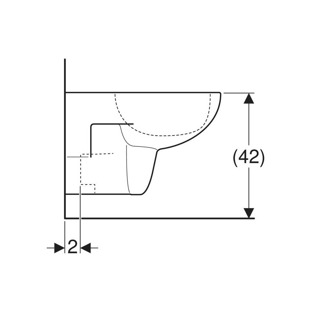 Vaso sospeso a cacciata. Senza Brida di risciacquo. Sedile da ordinare separatamente nostro codice 1238402 o 1238404.