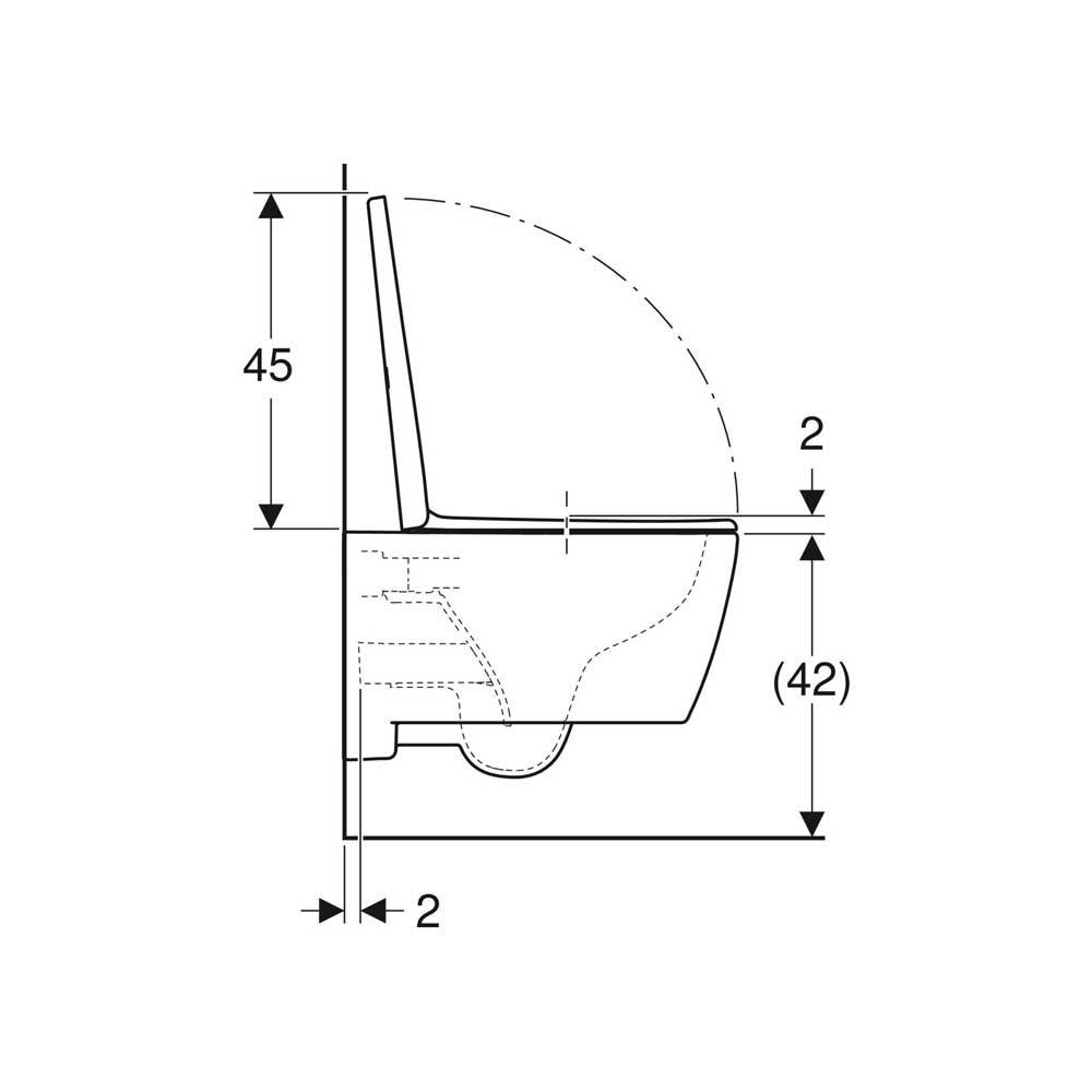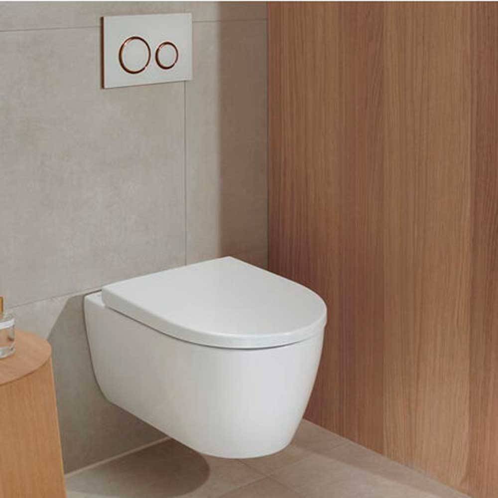 Vaso sospeso a cacciata. Fornito completo di sedile con chiusura rallentata e materiale di fissaggio.