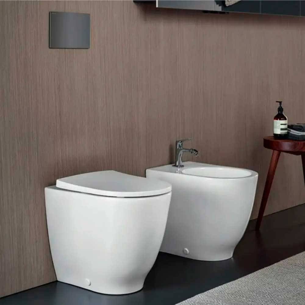 Bidet filo parete completo di sistemi di fissaggio (89962099). Da abbinare a rubinetteria monoforo e tubi di raccordo flessibili.